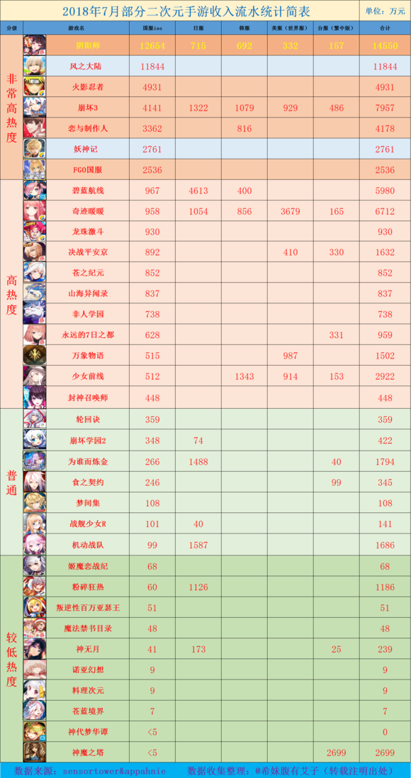 2018年7月度中国ゲーム売り上げ