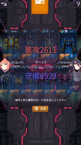 後攻:相手の属性と同じカードを出すこれを交互にしていって片方が出せなくなった時に総戦力が高いほうが攻撃し、数値が低いほうが攻撃を受ける