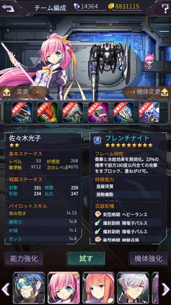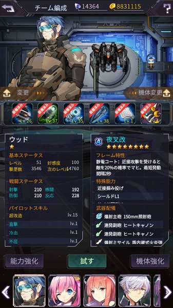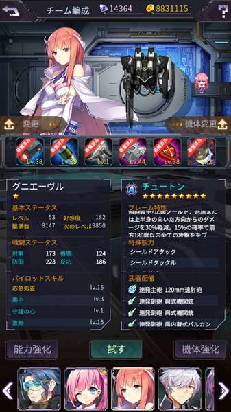 キャラレベ45,好感度☆2前後、機体☆6~7前後位の四人パーティーが中堅所って感じなのかな?