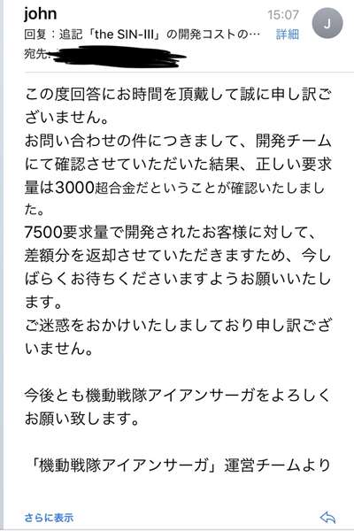 7500要求量で開発されたお客様に対して、差額分を返却させていただきますため、今しばらくお待ちくださいますようお願いいたします。