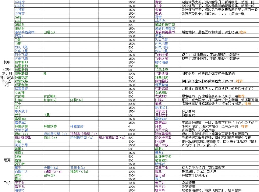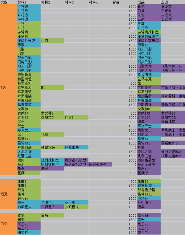 掘りポイント定めたいから開発機体の一覧が欲しいな