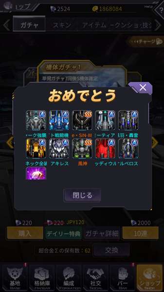 風神弱いのか…闇市で見つけたら1機作って図鑑乗せたら超合金にするか