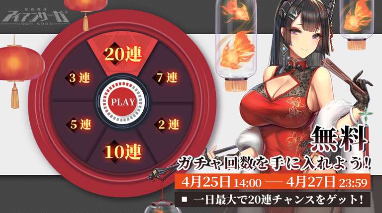 メンテナンス終了後から4月27日まで、1日1回、ルーレットを開放いたします。