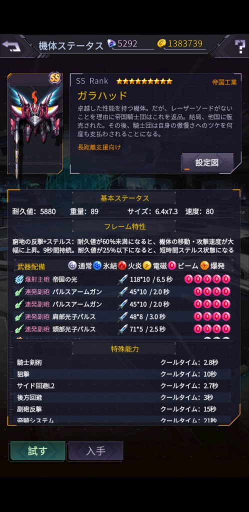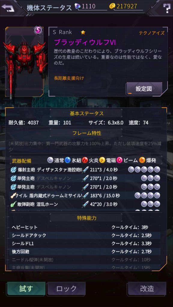 看板とも言えるヒロインの機体でストーリーのバナーにもなってるのに「この恐ろしいモンスター」とかいうアメリカンジョークみたいな謳い文句から始まる機体があるらしい
