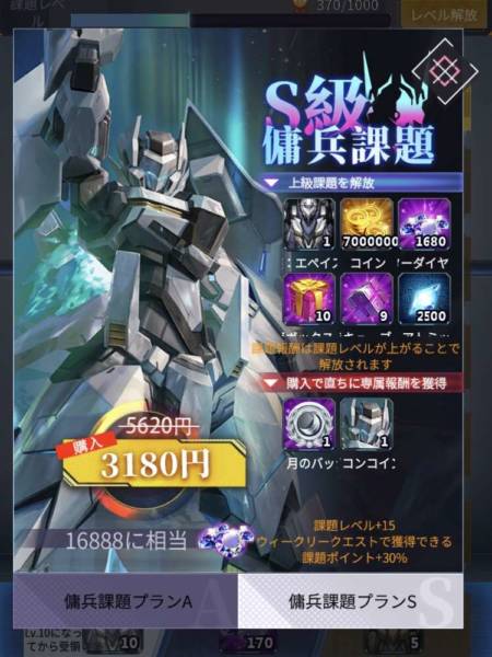 ちなみにS級傭兵課題を買うと貰える課題ポイントが30%増えるらしいから買うなら早めの方がいいぞ