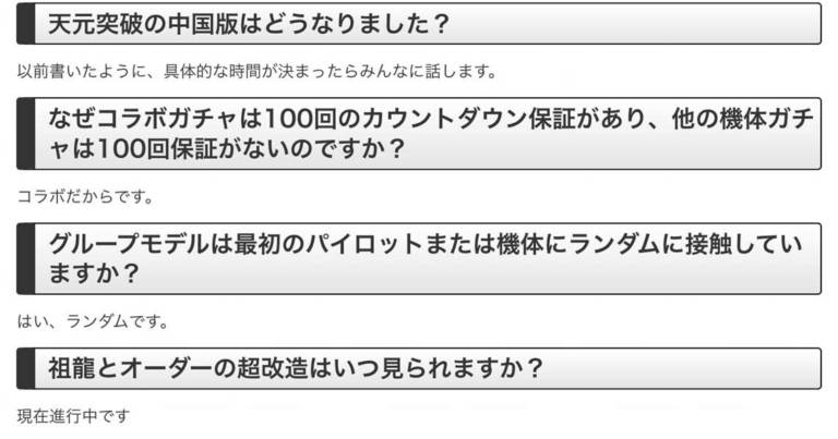 Q.なぜコラボガチャは100回のカウントダウン保証があり、他の機体ガチャは100回保証がないのですか?