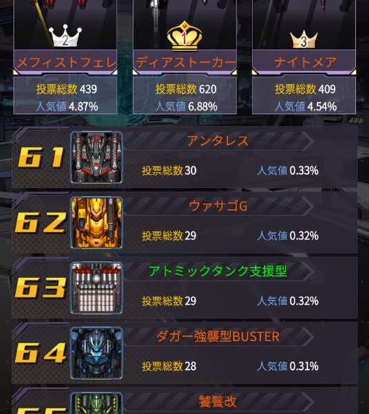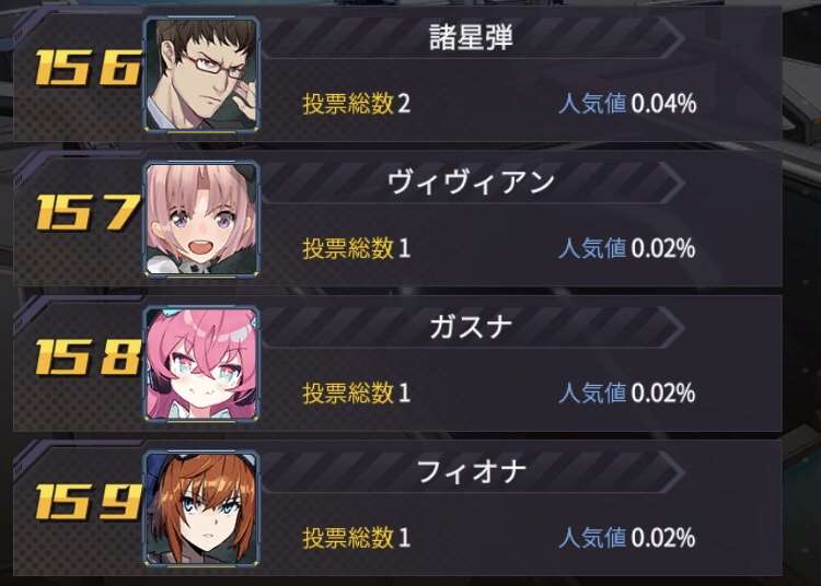 未だに3票しか入ってないやつもいるから2桁票数は人気なほうなんだと思うぞ()